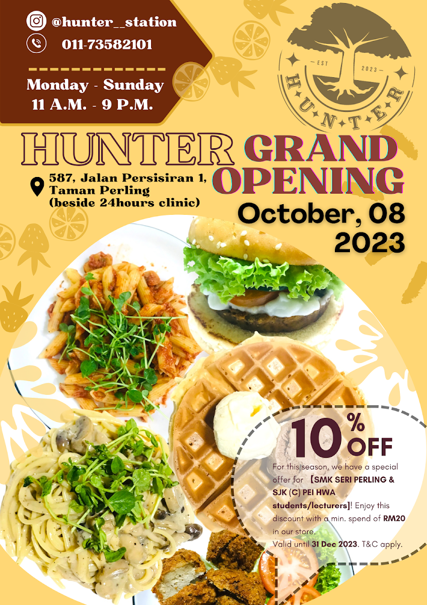 Hunter Cafe 587, Jln Persisiran Perling 1, Taman Perling, 81200 Johor Bahru, Johor Darul Ta'zim, Malaysia Phone: +60 11-7358 2101
